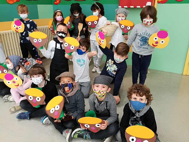 A la tarda ens hem menjat les castanyes, que ens han torrat les cuineres, i els panellets de coco que havíem fet. També ens hem disfressat, els que hem volgut, de castanyeres i castanyers.